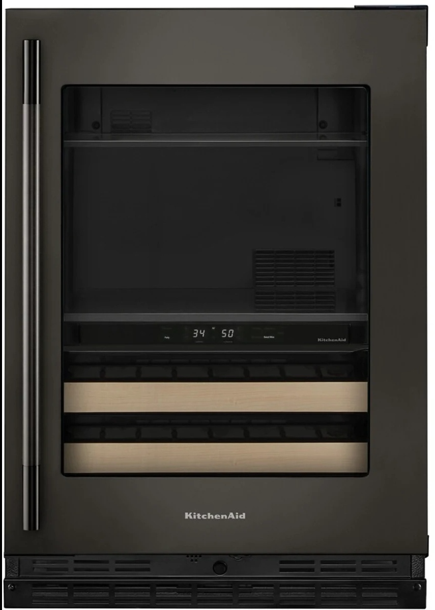 This 24" Undercounter Beverage Center with Full-Extension Wood-Front Racks stores 14 wine bottles below with room for drinks and food on the full-width shelves above. Two Temperature-Controlled Zones adjust for what you’re storing, and a Temperature Monitoring System with sensor alert adds peace of mind. Fully Flush Installation with Hidden Hinges provides a built-in look within cabinetry.Read More